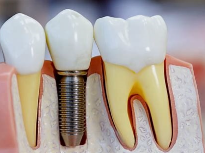Dental implants are artificial tooth roots made of titanium, designed to replace missing teeth and restore natural function and appearance. They provide a permanent, stable base for crowns, bridges, or dentures.